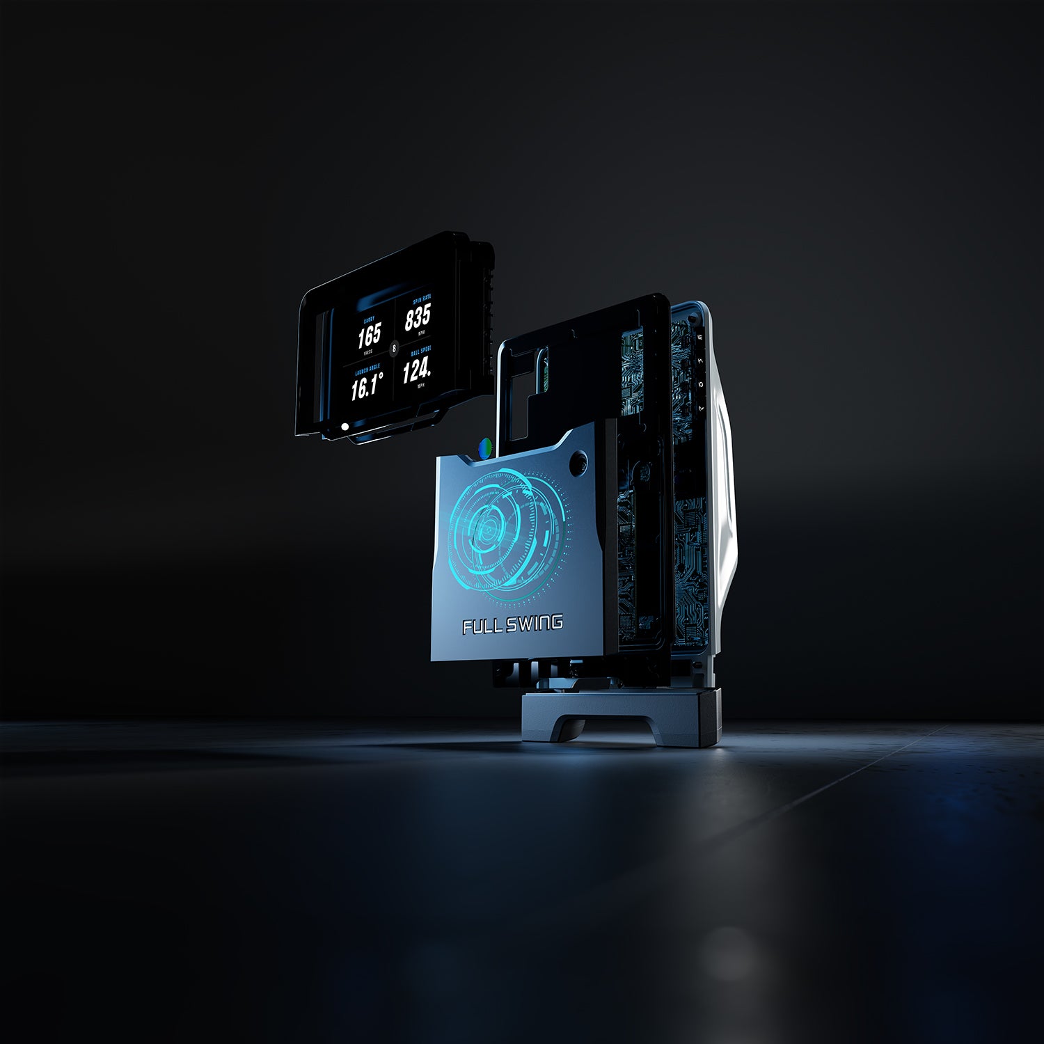 Keine zusätzlichen Zubehörgebühren hier, es ist alles enthalten: Full Swing KIT Launch Monitor, Ladeblock, USB-C-Ladekabel, schützende Reisetasche